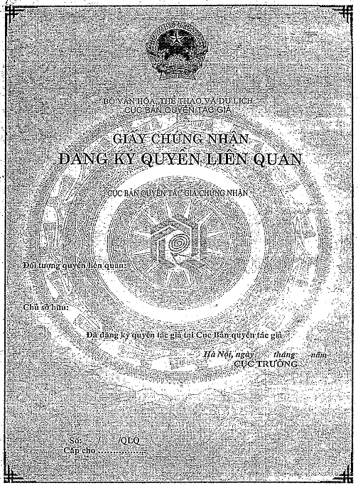 Chứng nhận đăng ký quyền liên quan: Mẫu