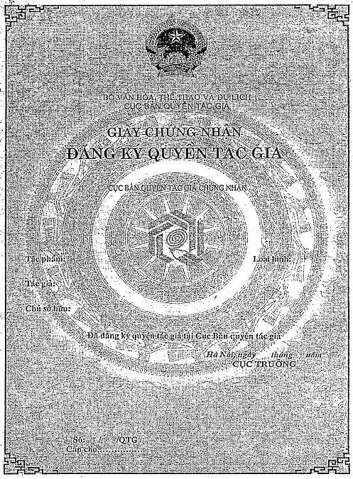 Chứng nhận đăng ký quyền tác giả: Mẫu